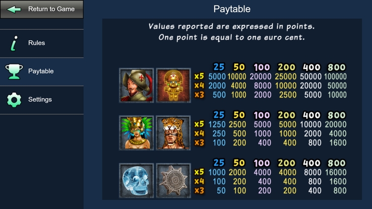 | Каменный календарь, Череп | 50-800 | 100-1 600 | 1 000-16 000 |