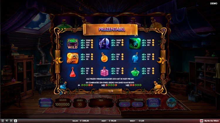 Таблица выплат Myrtle the Witch