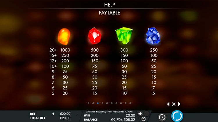 Таблица выплат Mysterious Gems