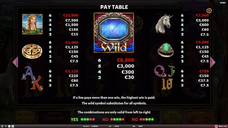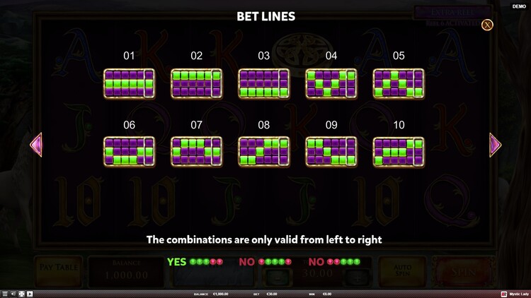 Таблица выплат Mystic Lady