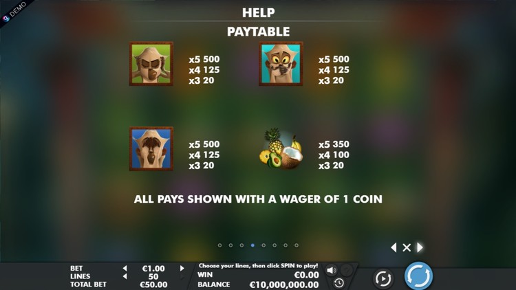 Таблица выплат Mystic Monkeys