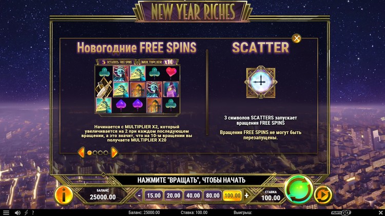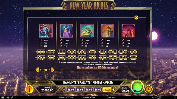 Таблица выплат New Year Riches