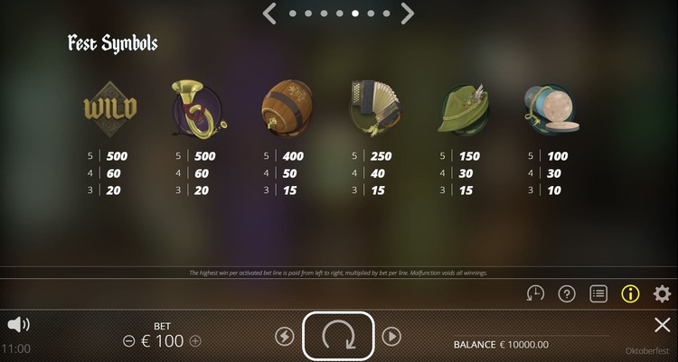 Таблица выплат Oktoberfest