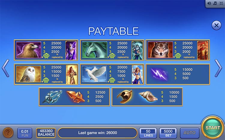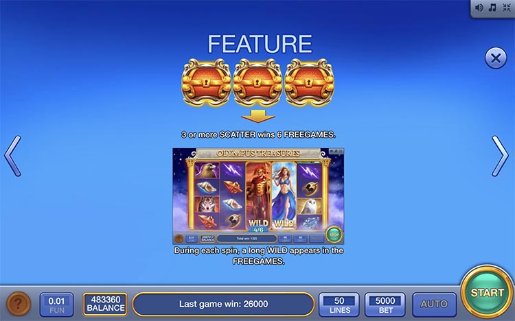 Таблица выплат Olympus Treasures