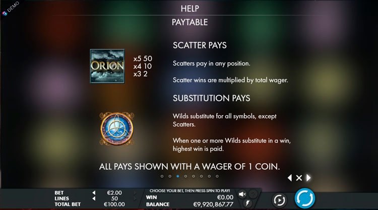 Таблица выплат Orion