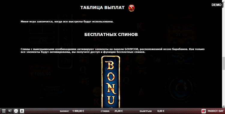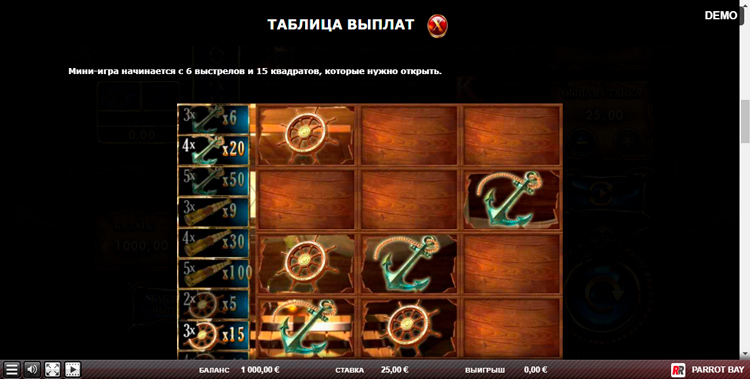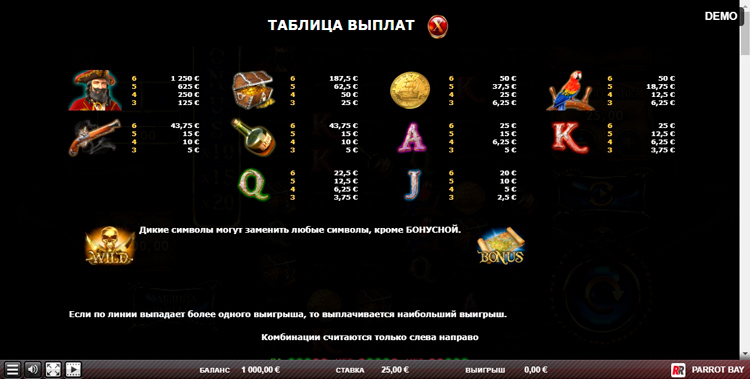 Таблица выплат Parrot Bay
