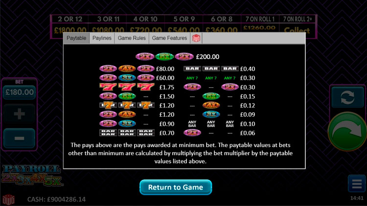 Таблица выплат Payroll 2x3x4x5x
