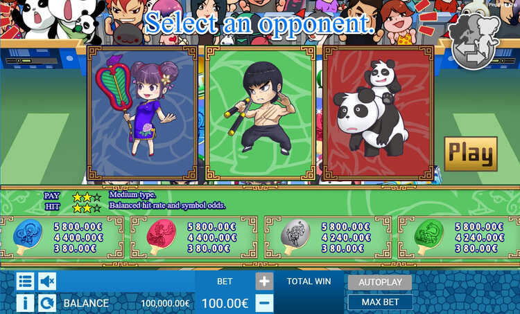 Таблица выплат Ping Pong King