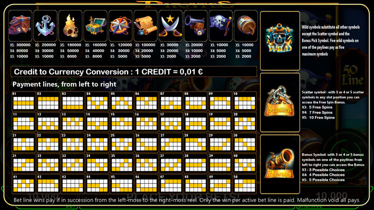 Таблица выплат Pirates Adventure