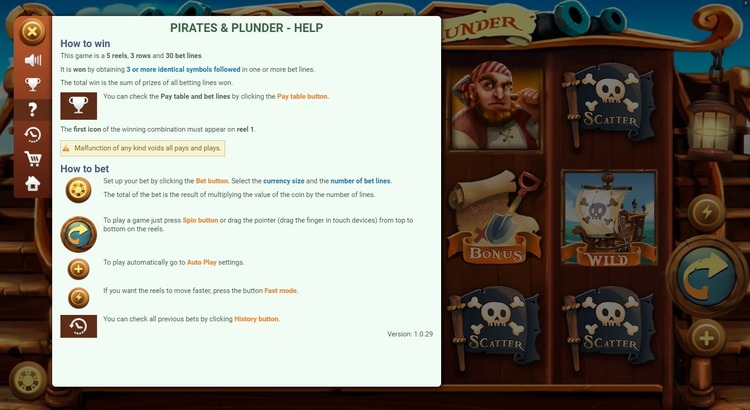 Таблица выплат Pirates and Plunder