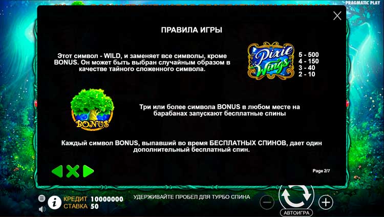 | Логотип игры (Wild) | 10 | 40 | 150 | 500 |