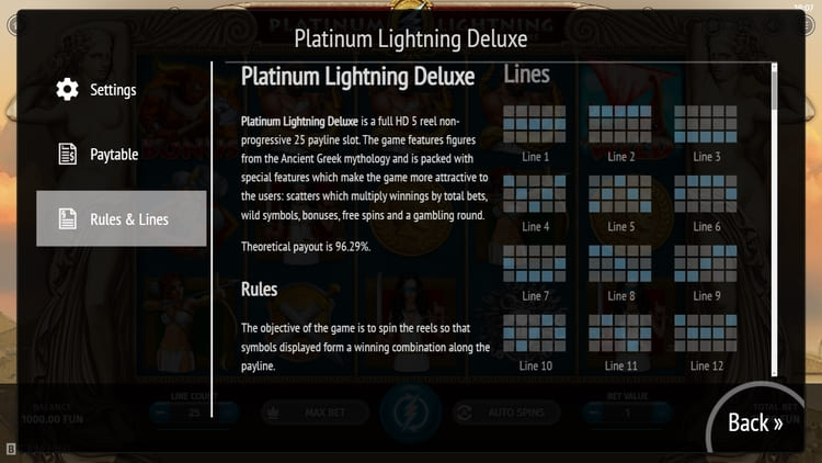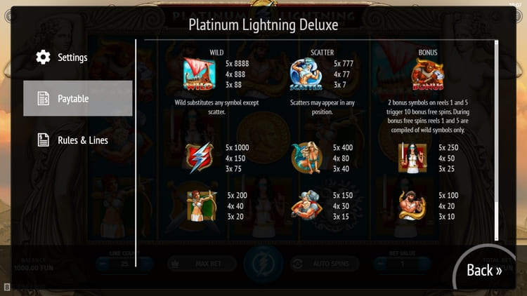 Таблица выплат Platinum Lightning Deluxe
