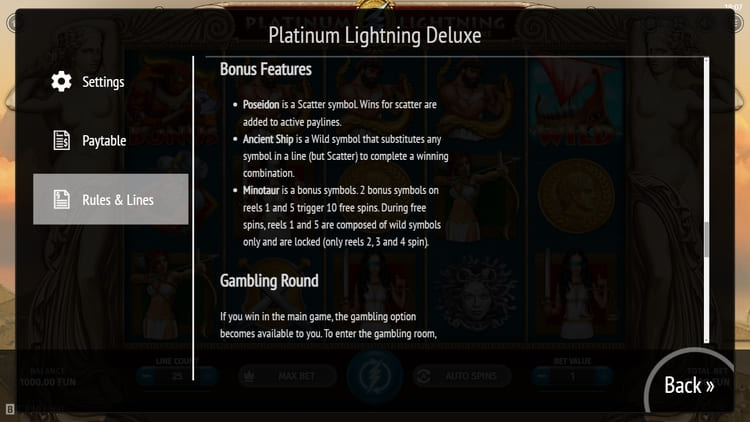 Дополнительные функции слота Platinum Lightning Deluxe: