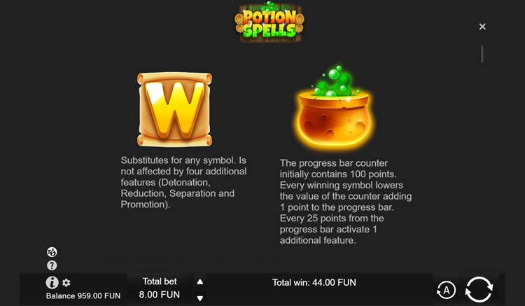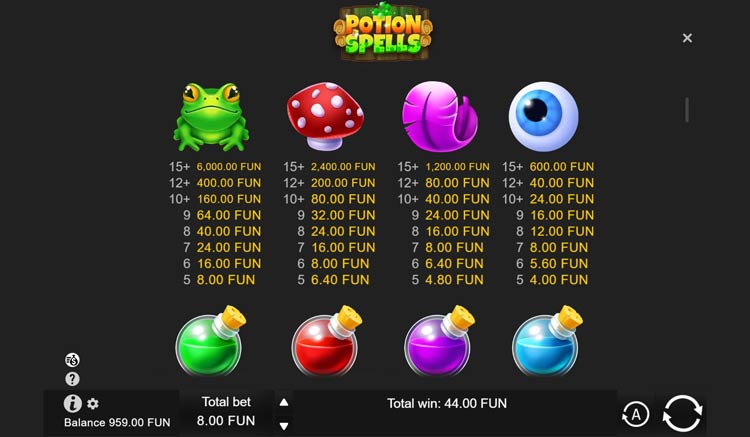 Таблица выплат Potion Spells