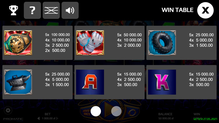 | Боксер (Scatter) | 500 | 1 000 | 2 000 | 5 000 |