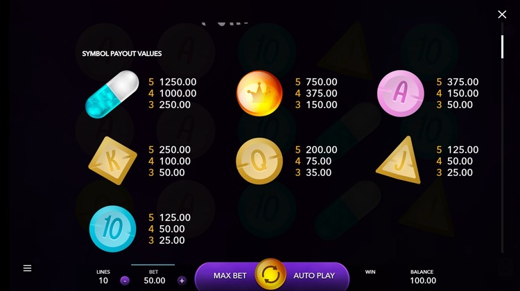 Таблица выплат Purple Pills