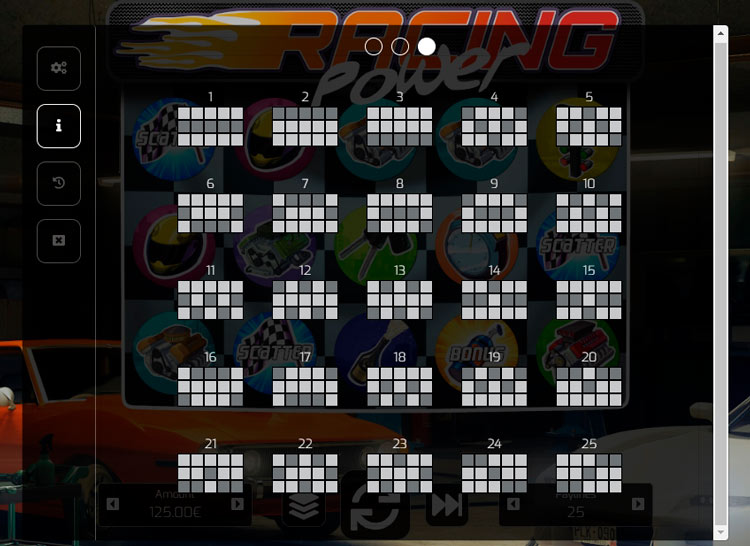 Таблица выплат Racing Power