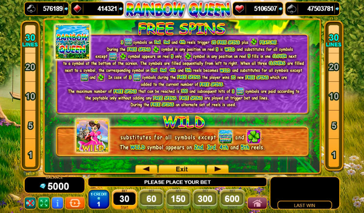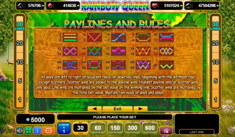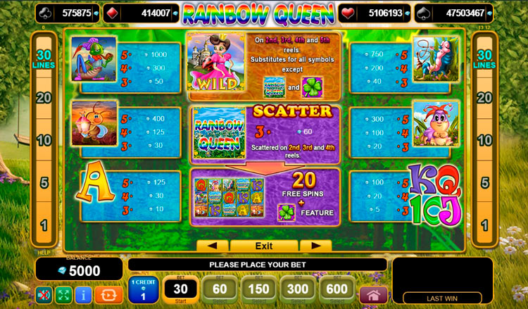 Таблица выплат Rainbow Queen