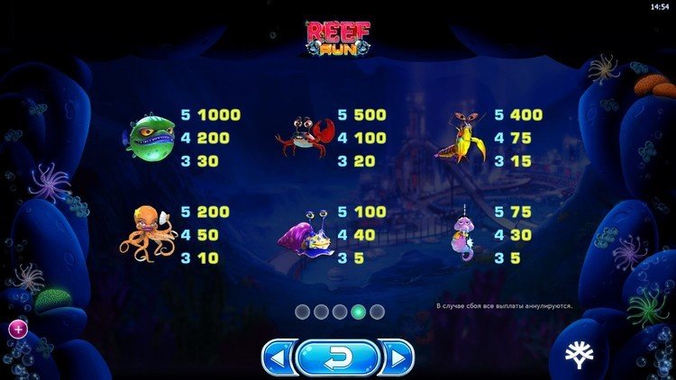 Таблица выплат Reef Run