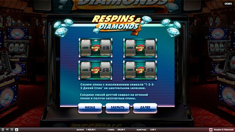 Таблица выплат Respins and Diamonds