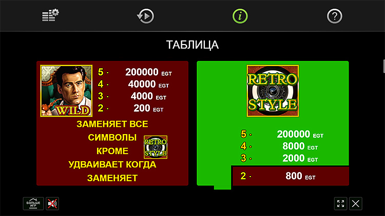 Таблица выплат Retro Style