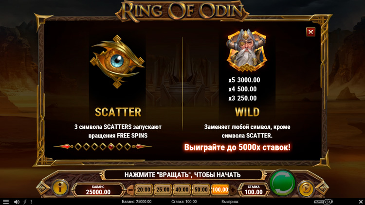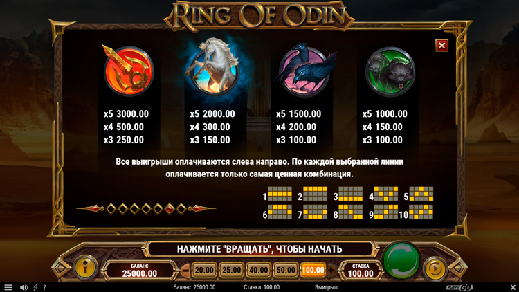 | Трезубец, Один (Wild) | 250 | 500 | 3000 |