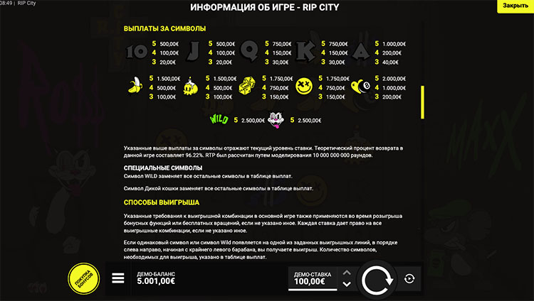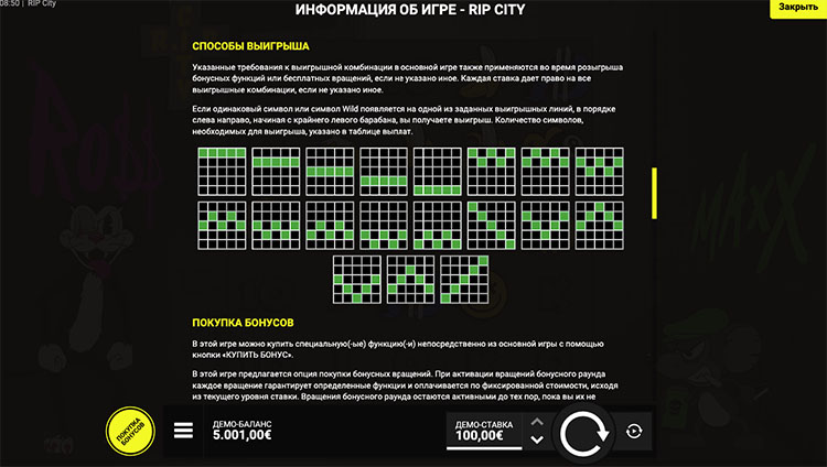 Таблица выплат RIP City