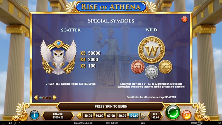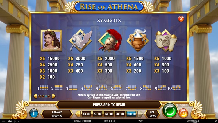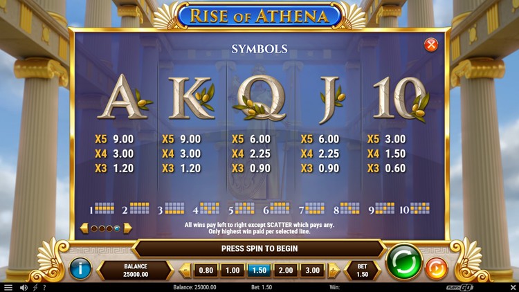 Таблица выплат Rise of Athena