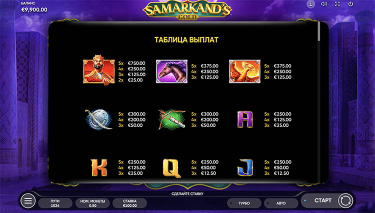 Таблица выплат Samarkand’s Gold