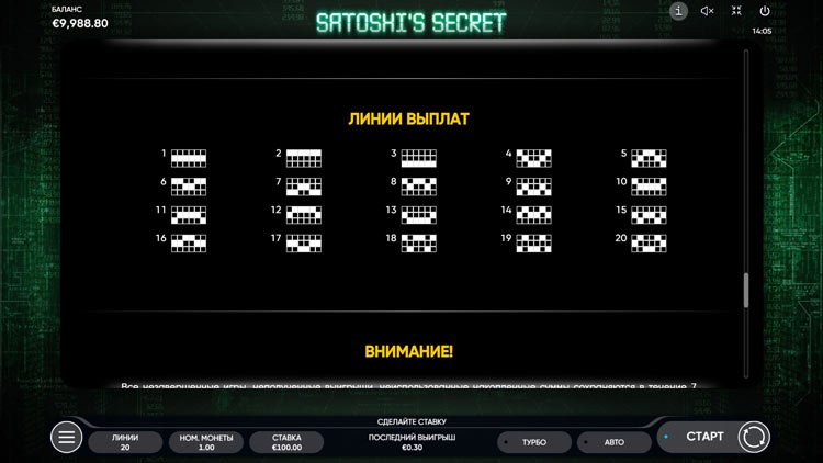 Таблица выплат Satoshi’s Secret