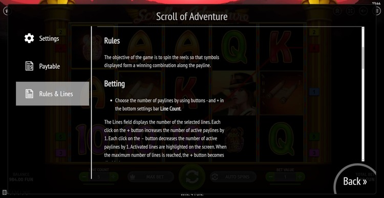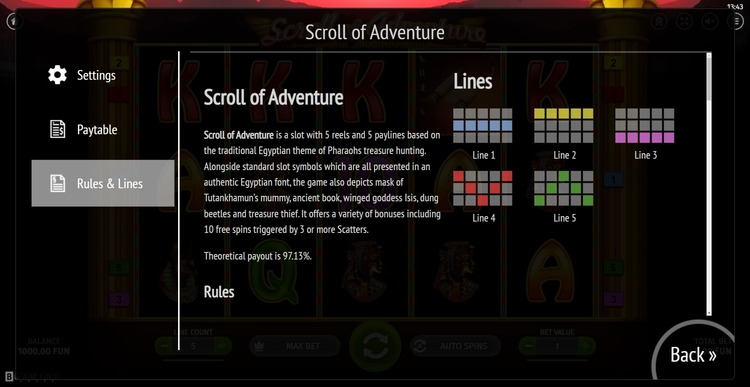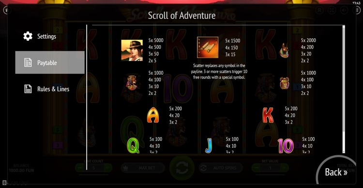 Таблица выплат Scroll of Adventure
