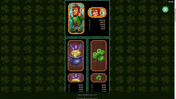 | Лепрекон | 20 | 40 | 200 | 500 | 1000 |