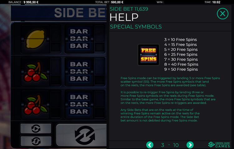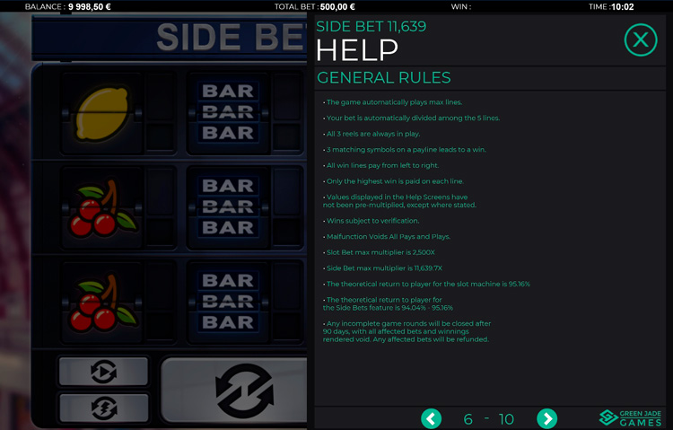 Таблица выплат Side Bet