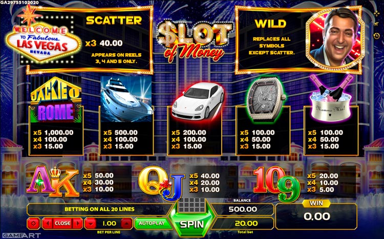 Таблица выплат Slot Of Money
