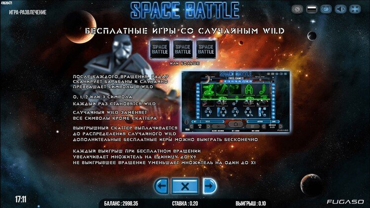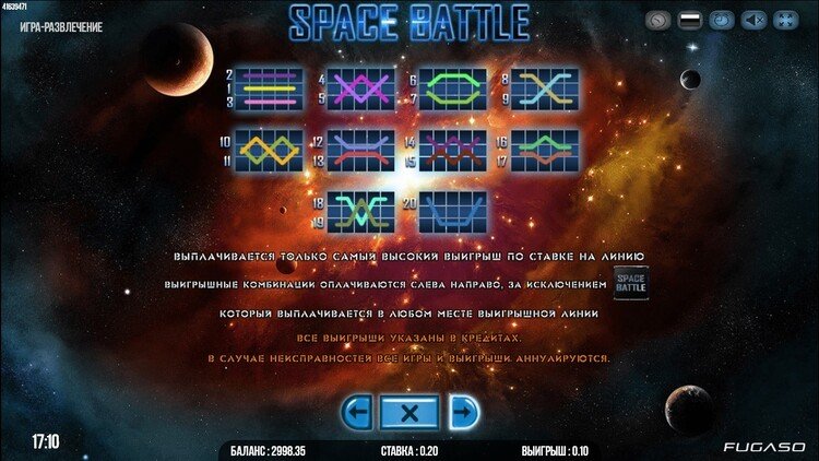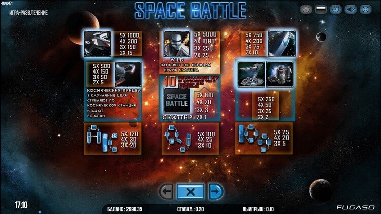 Таблица выплат Space Battle