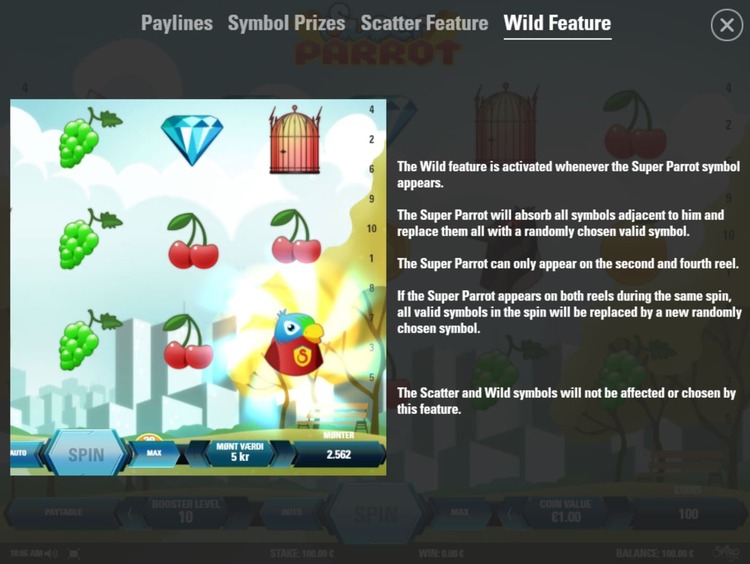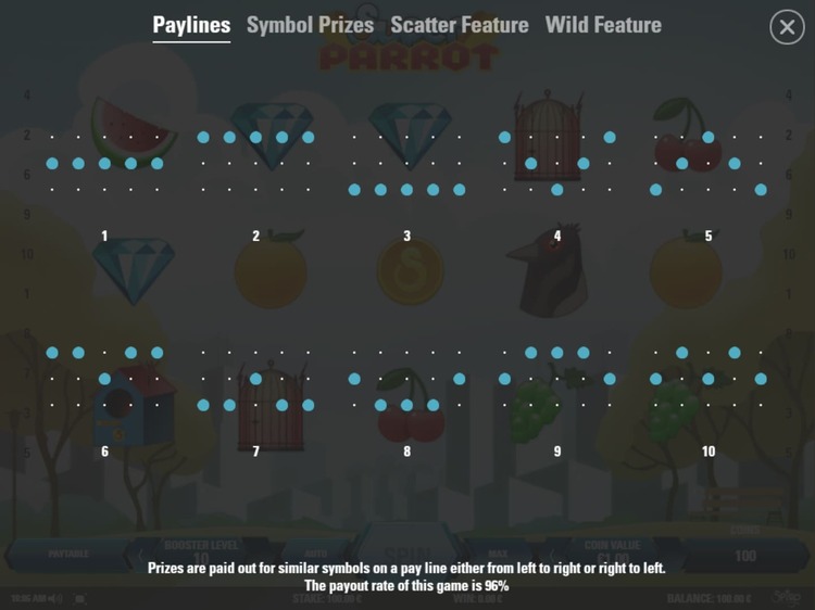 Таблица выплат Super Parrot