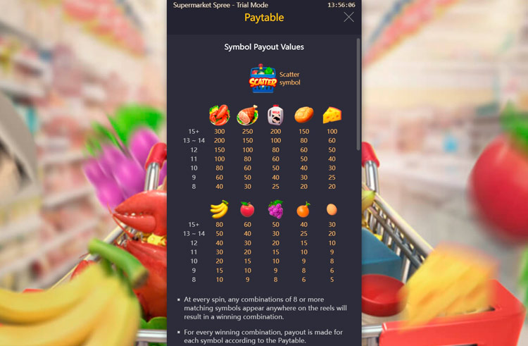 Таблица выплат Supermarket Spree