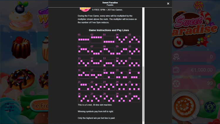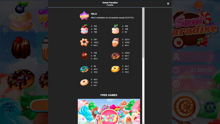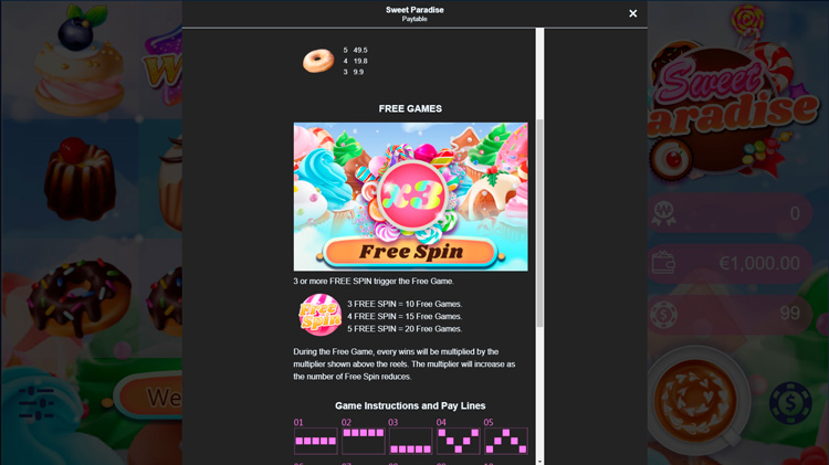 Таблица выплат Sweet Paradise