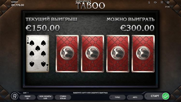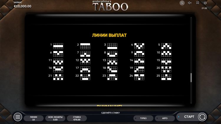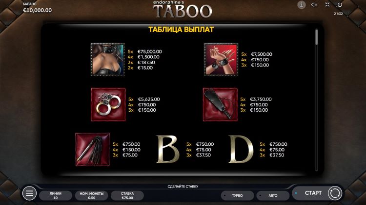 Таблица выплат Taboo