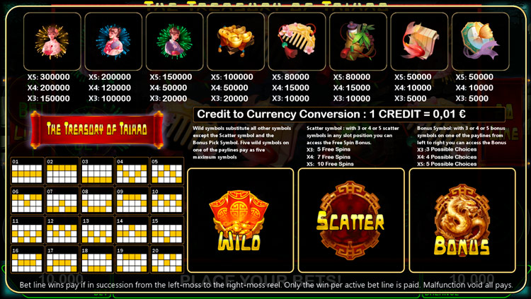 Таблица выплат Taihao