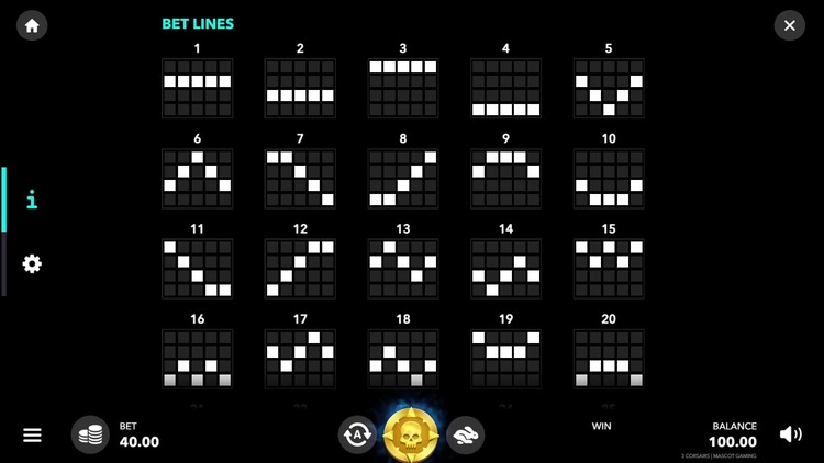 Таблица выплат Three Corsairs