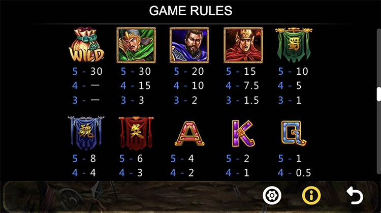 Таблица выплат Three Kingdoms