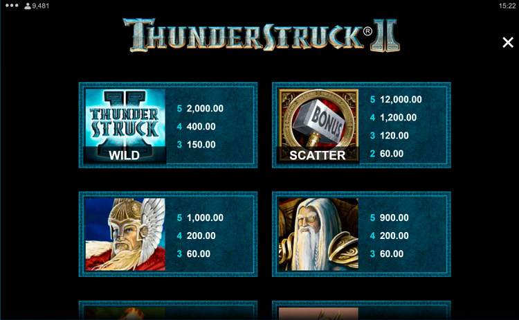 Таблица выплат Thunderstruck 2