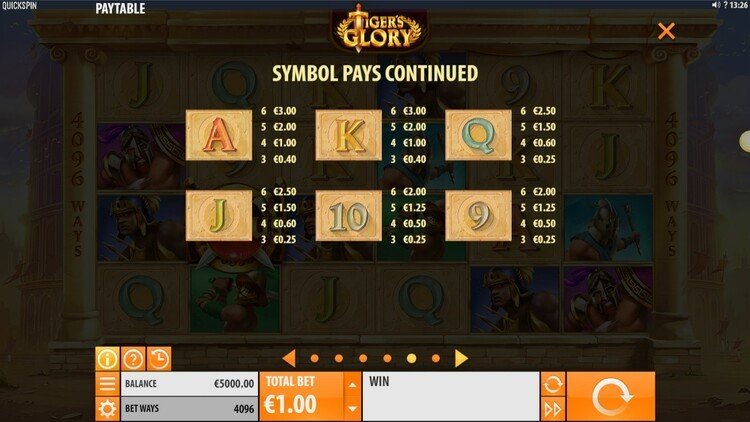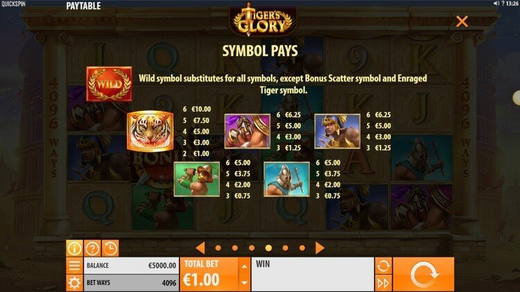 Таблица выплат Tiger’s Glory