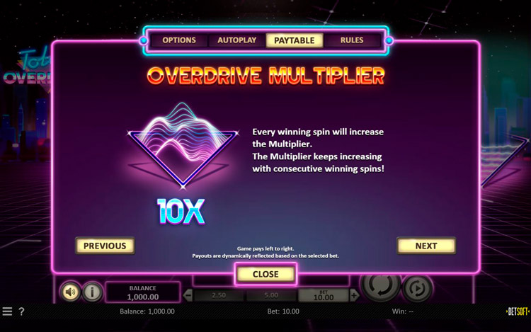Таблица выплат Total Overdrive