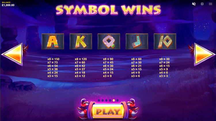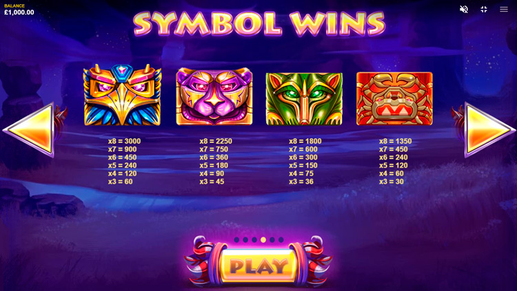 Таблица выплат Totem Lightning Power Reels