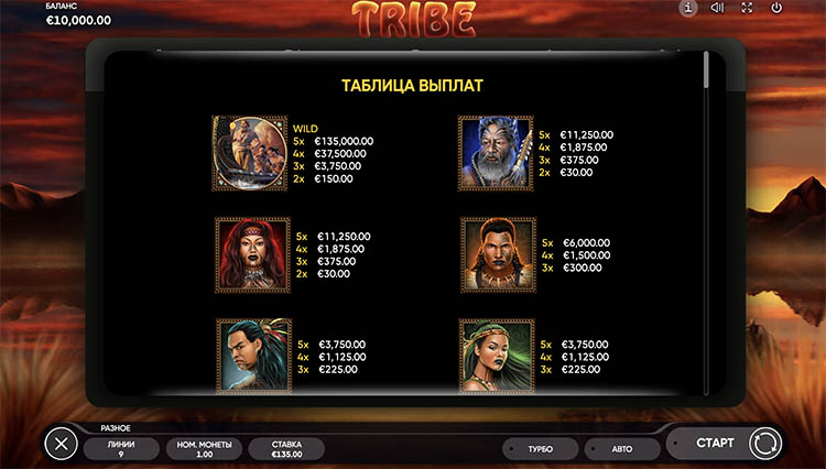 Таблица выплат Tribe