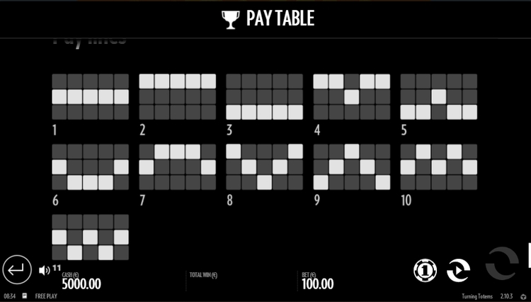 Таблица выплат Turning Totems