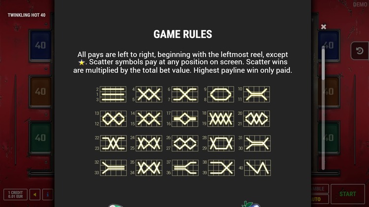Таблица выплат Twinkling Hot 40