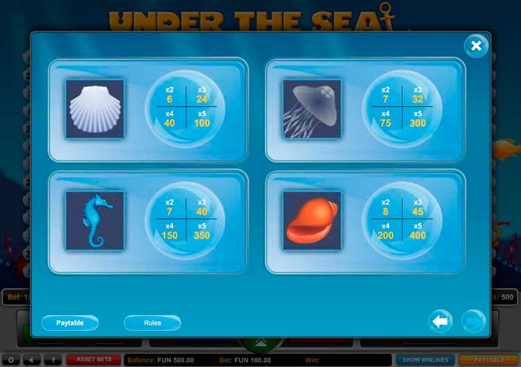 Таблица выплат Under the Sea